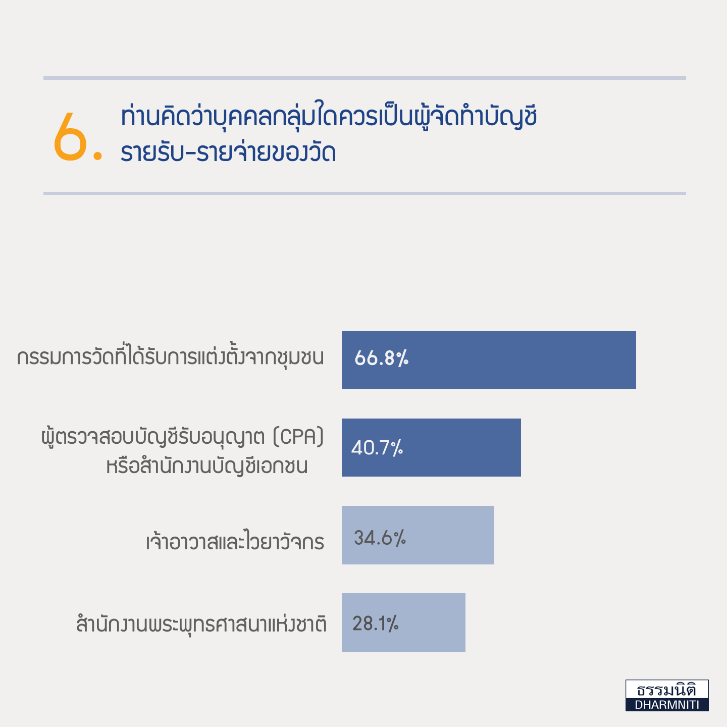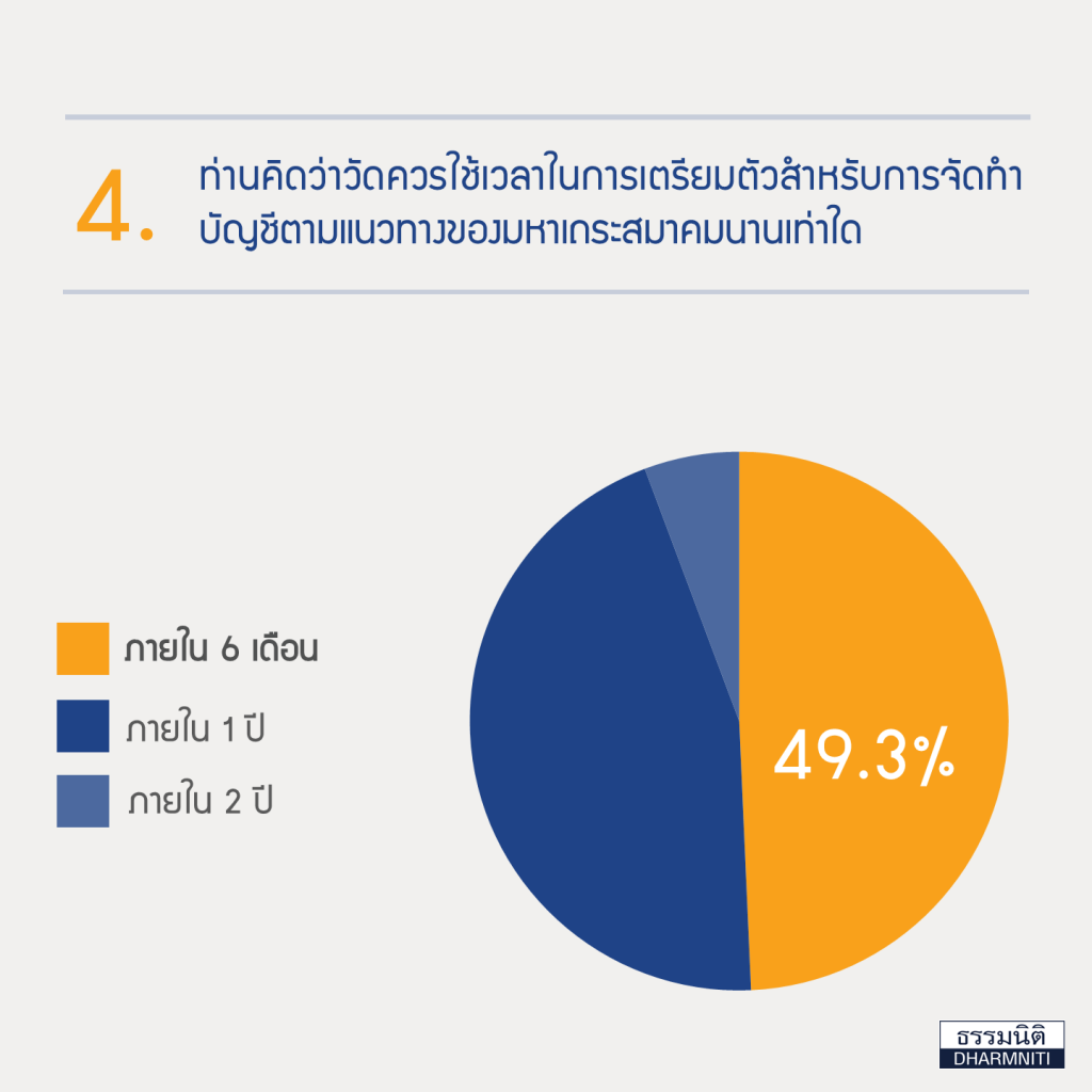 ประเด็นคำถาม คือ สำรวจความคิดเห็นต่อแนวทางการจัดทำและตรวจสอบบัญชีของวัด
