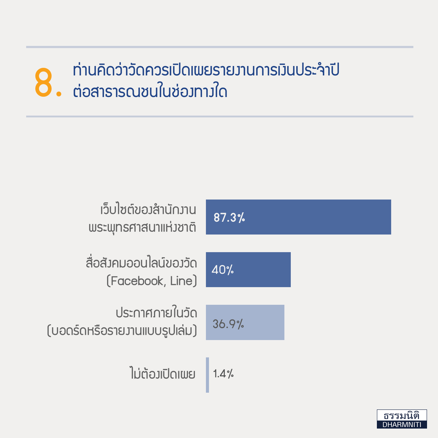 ผลสำรวจความคิดเห็นเรื่อง “การจัดทำและตรวจสอบบัญชีกับความโปร่งใสทางการเงินของวัด”