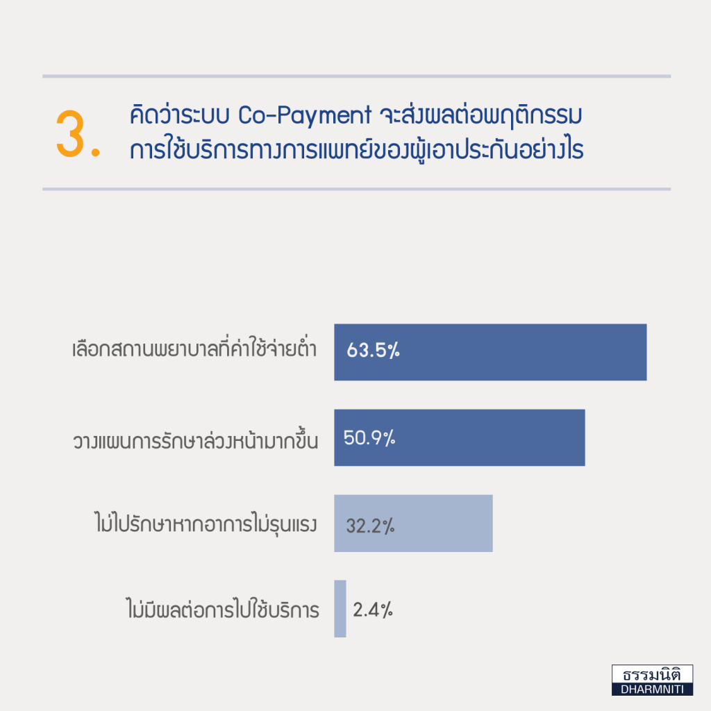ประเด็นคำถาม คือ สำรวจความเข้าใจและผลกระทบของระบบ Co-Payment ในการใช้สิทธิประกันสุขภาพ
