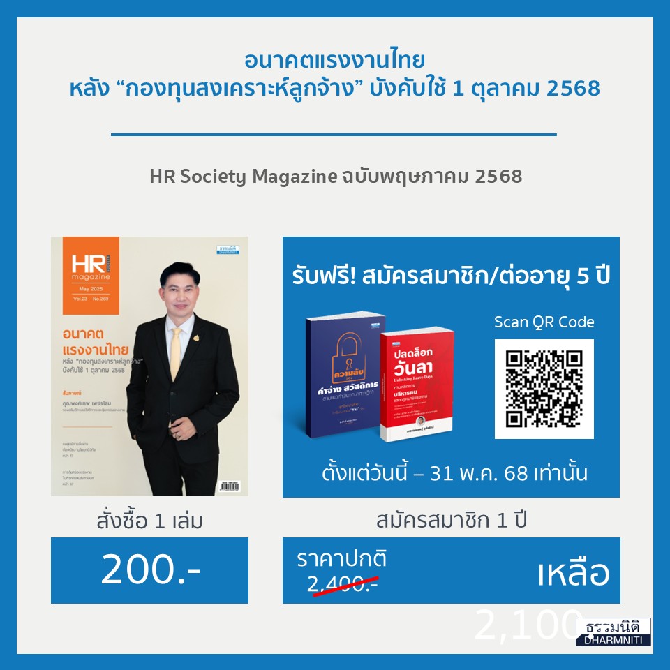 อ่านเพิ่มเติมใน HR Society Magazine ฉบับพฤษภาคม 2568