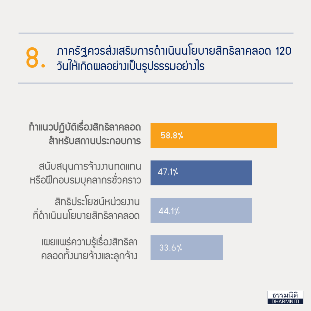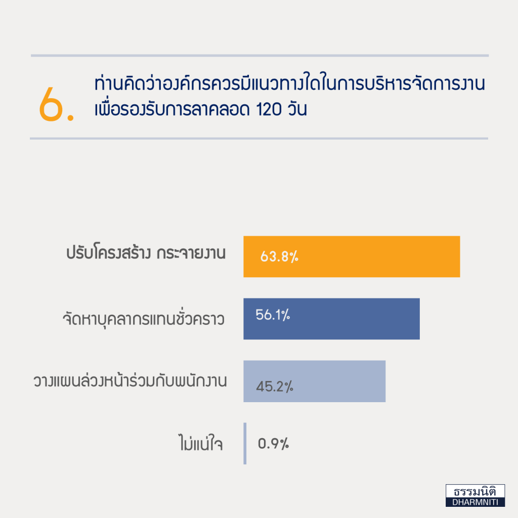 ผลสำรวจความคิดเห็นเรื่อง “สิทธิลาคลอด 120 วัน: การปรับตัวในการบริหารงานและแนวทางรับมือขององค์กร”