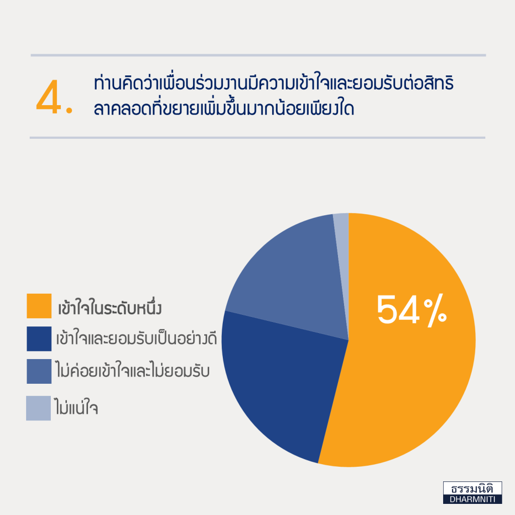 ประเด็นคำถาม คือ สำรวจมุมมองต่อการเพิ่มสิทธิลาคลอดเป็น 120 วัน และแนวทางการปรับตัวขององค์กร