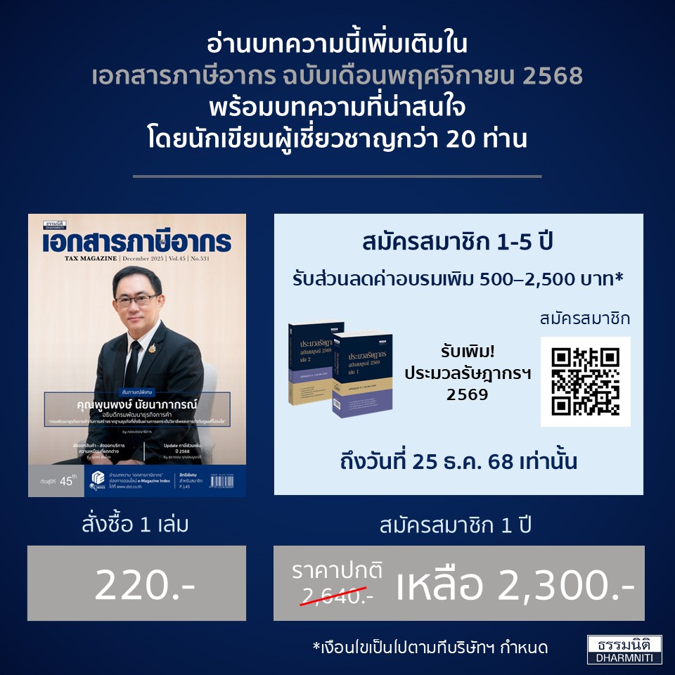 อ่านบทความนี้เพิ่มเติมใน เอกสารภาษีอากร ฉบับเดือนพฤศจิกายน 2568