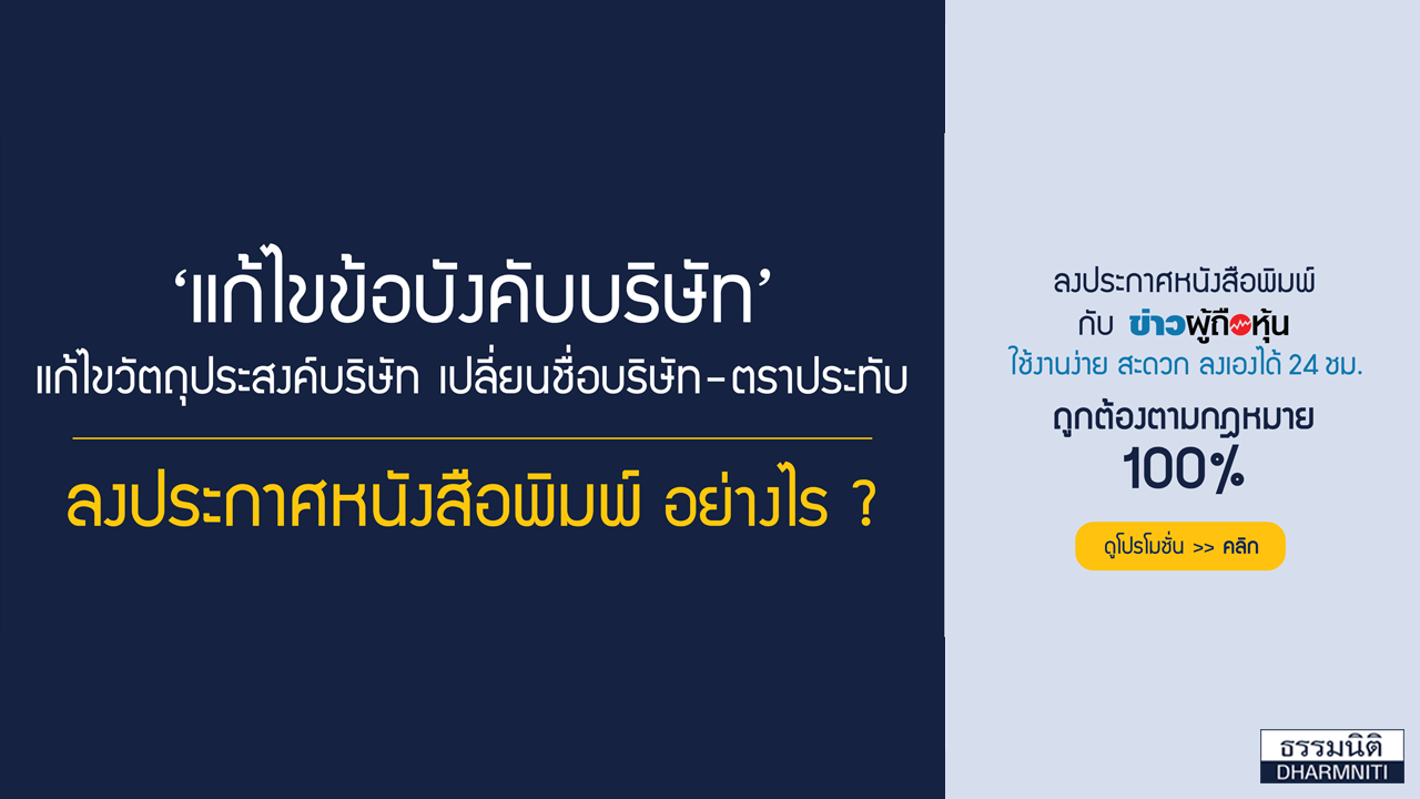 ลงประกาศออนไลน์ได้ 24 ชม. ส่ง นสพ.ฉบับจริงถึงมือท่าน ฟรี!
