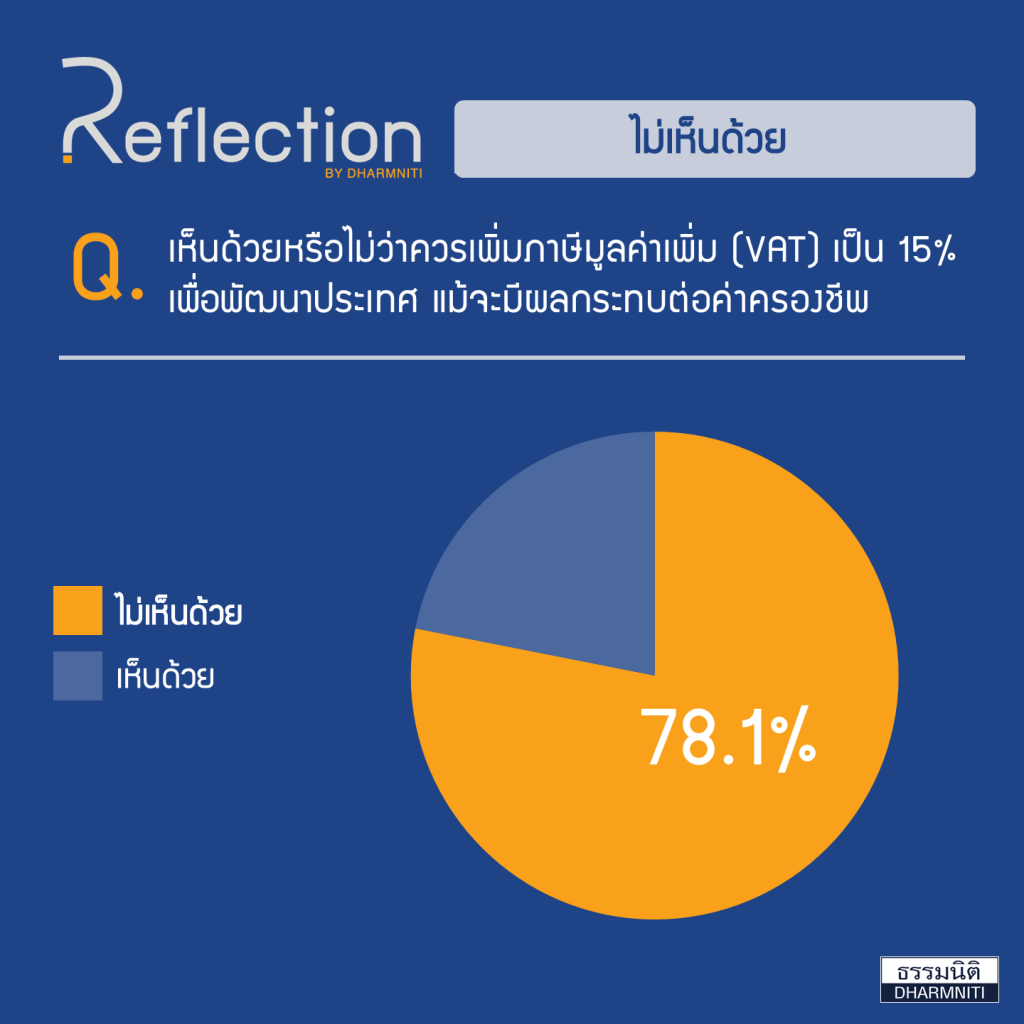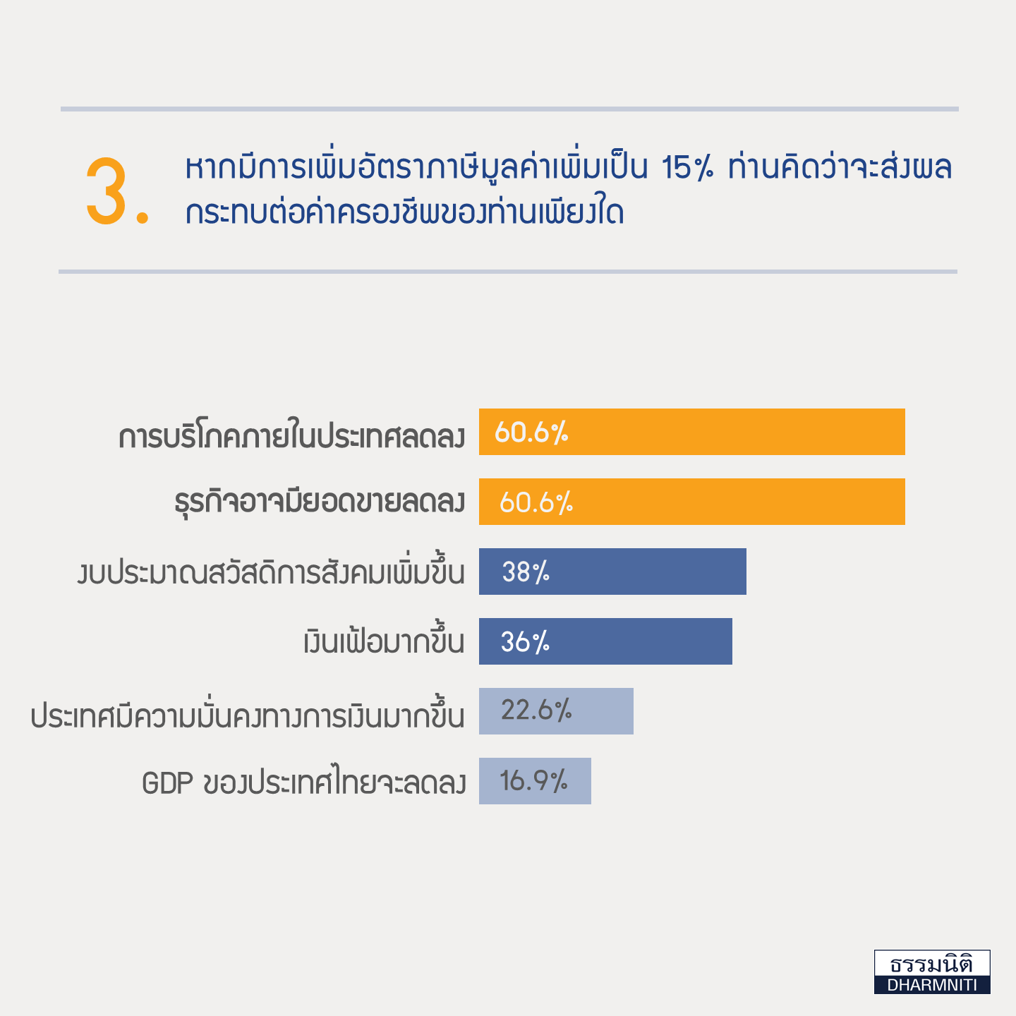 ประเด็นคำถาม คือ สำรวจความคิดเห็นของประชาชนต่อการเพิ่มอัตราภาษีมูลค่าเพิ่มเป็น 15%